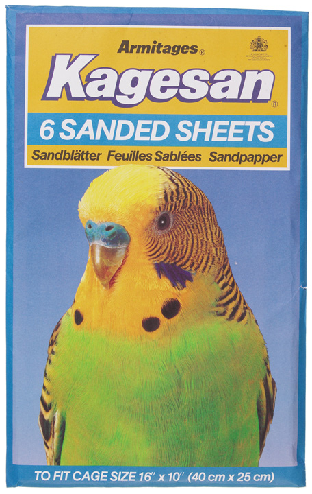 Kagesan Sand Sheets, convenient and hygienic way to keep your budgie's or canary's cage clean and tidy. Just remove the used sand sheet and replace with a new sanded sheet twice a week. Kagesan sand sheets are cut to size to fit the more common cage. It may be necessary to trim the sheet down to fit your own cage.